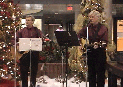 ![]() Joel and Peter performing for the annual Christmas sing-a-long Atrium of Fort William Bldg. - Christmas Eve 2005 |