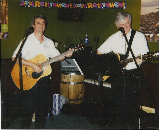 ![]() Joel and Peter performing for a retirement party Barkley's Club, Mount Pearl - Fall 2003 |